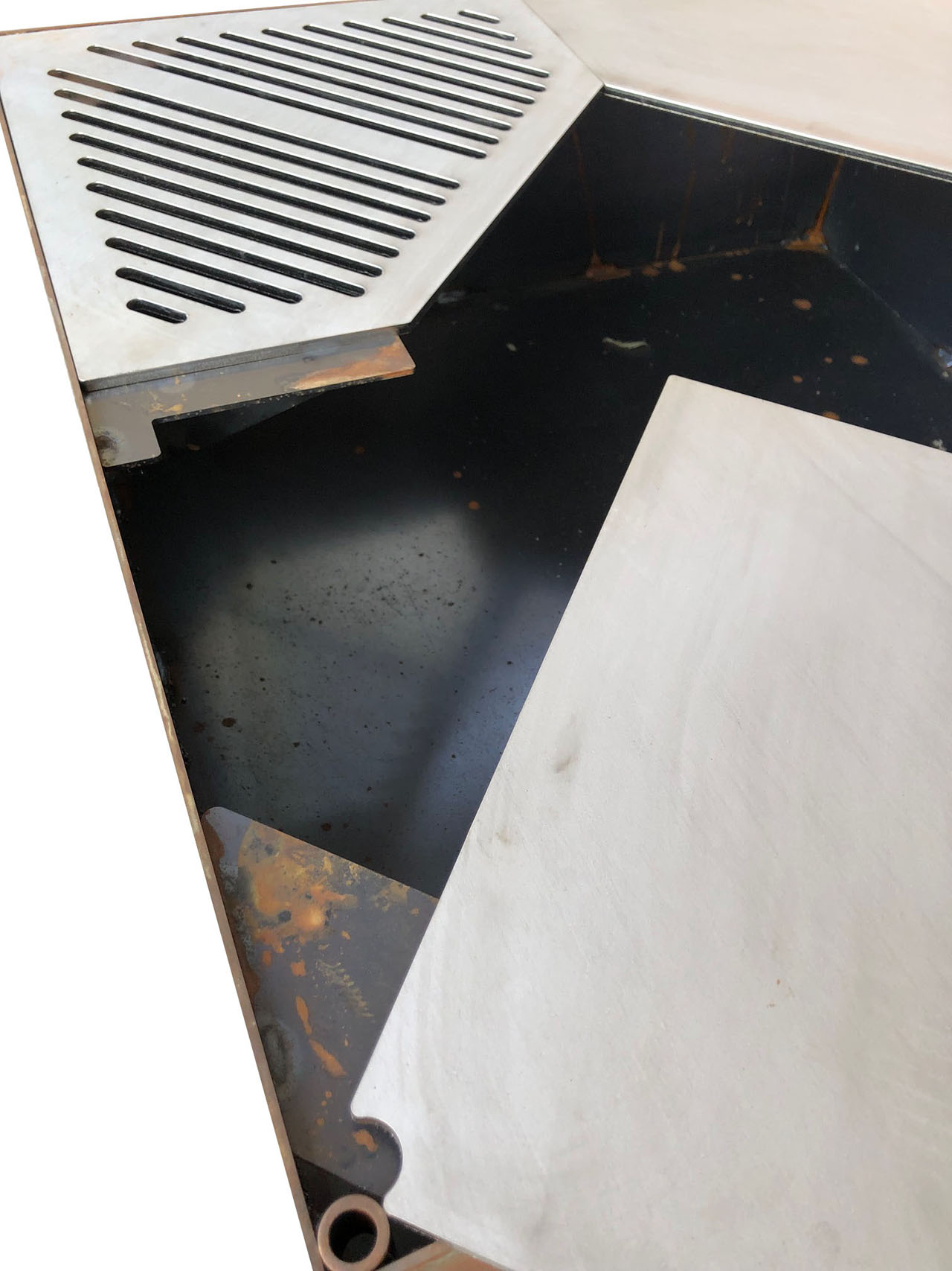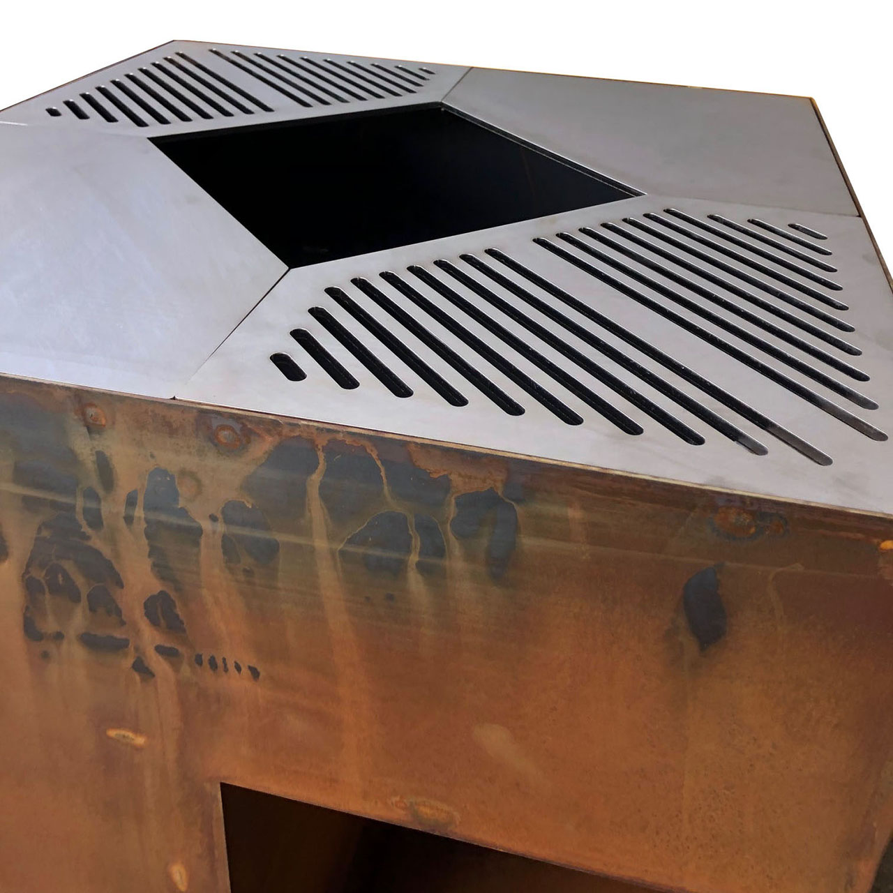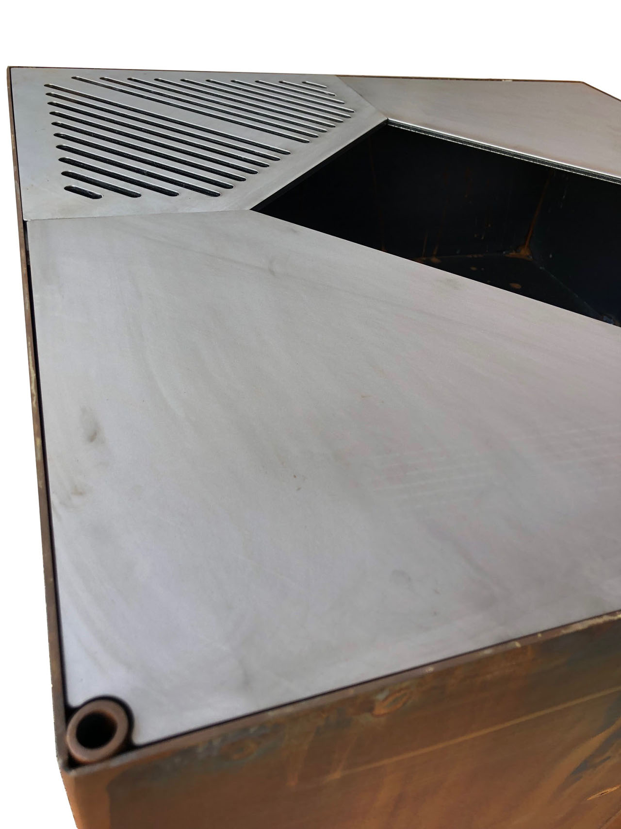 Il COR-TEN® è un acciaio strutturale e pregiato che, all’aperto, forma uno strato di ossidazione molto decorativo e variopinto simile alla ruggine. Questo strato è soprattutto protettivo e dona una garanzia a vita al materiale. Il processo di ossidazione dura 3 anni.